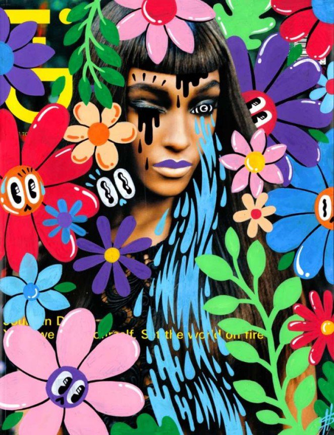 ‘Doodler chuyên nghiệp’ Hattie Stewart nổi tiếng bởi những sáng tạo màu sắc và sự pha trộn đầy mạnh mẽ trên các bìa tạp chí hào nhoáng. Và đây, cô đã sử dụng một cầu vồng cùng những màu sắc bão hòa bao gồm tím, xanh biển, đỏ và xanh lá trên bìa tạp chí i-Dmagazine.