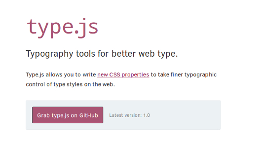 Type.js được thiết kế nên bởi Nathan Ford-giám đốc sản xuất của công ty Monotype, hứa hẹn sẽ là một trong những lựa chọn phù hợp nhất cho những người muốn sở hữu quyền kiểm soát chặt chẽ trang web của mình. Bởi nó có thể cho phép bạn viết các thuộc tính CSS mới để hỗ trợ cho việc kiểm soát của mình, đồng thời cũng cho phép bạn điều chỉnh kerning giữa cặp chữ cái, thiết lập quy tắc rag v.v…