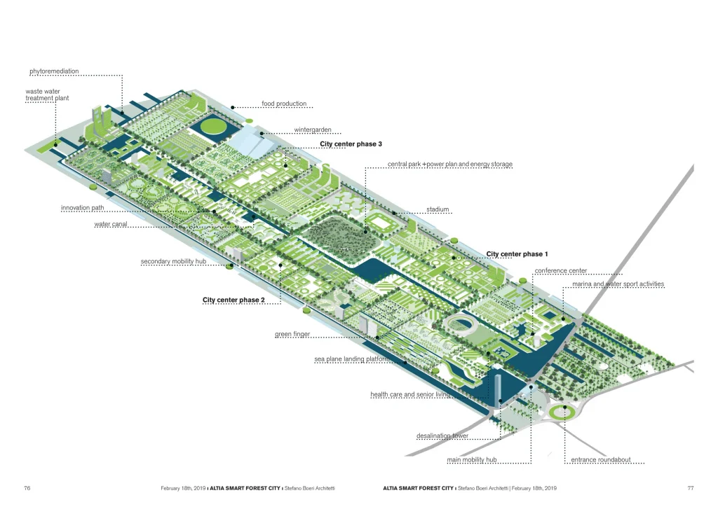 “Smart Forest City Cancun là một khu vườn thực vật trong một thành phố đương đại, dựa trên di sản của người Maya và mối quan hệ thiêng liêng của họ với thế giới tự nhiên”, Boeri cho biết. “Một hệ sinh thái đô thị nơi thiên nhiên và thành phố hòa quyện vào nhau và hoạt động như một sinh vật.”