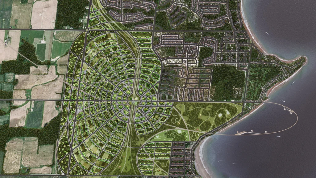 Công ty kiến trúc SOM đã đưa ra một kế hoạch tổng thể cho dự án do tư nhân tài trợ, sẽ có diện tích 700km vuông bao gồm một trong những công viên đô thị lớn nhất thế giới.