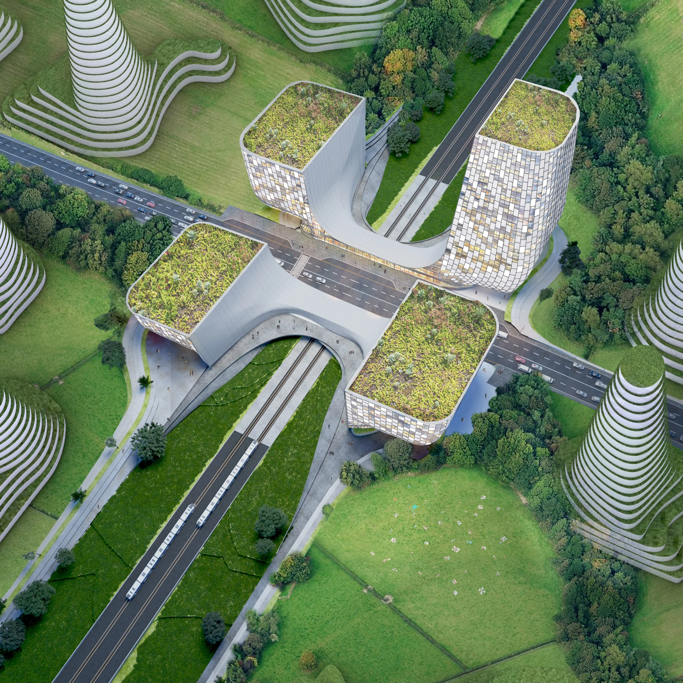 Công ty kiến trúc Hà Lan OMA đã đưa ra một quy hoạch tổng thể về một thành phố của tương lai không có ô tô cho thủ phủ của tỉnh Tứ Xuyên, Trung Quốc mà họ tuyên bố thách thức các mô hình quy hoạch đô thị thông thường vốn được thúc đẩy bởi mạng lưới đường sá hoặc việc tối đa hóa tổng diện tích sàn.