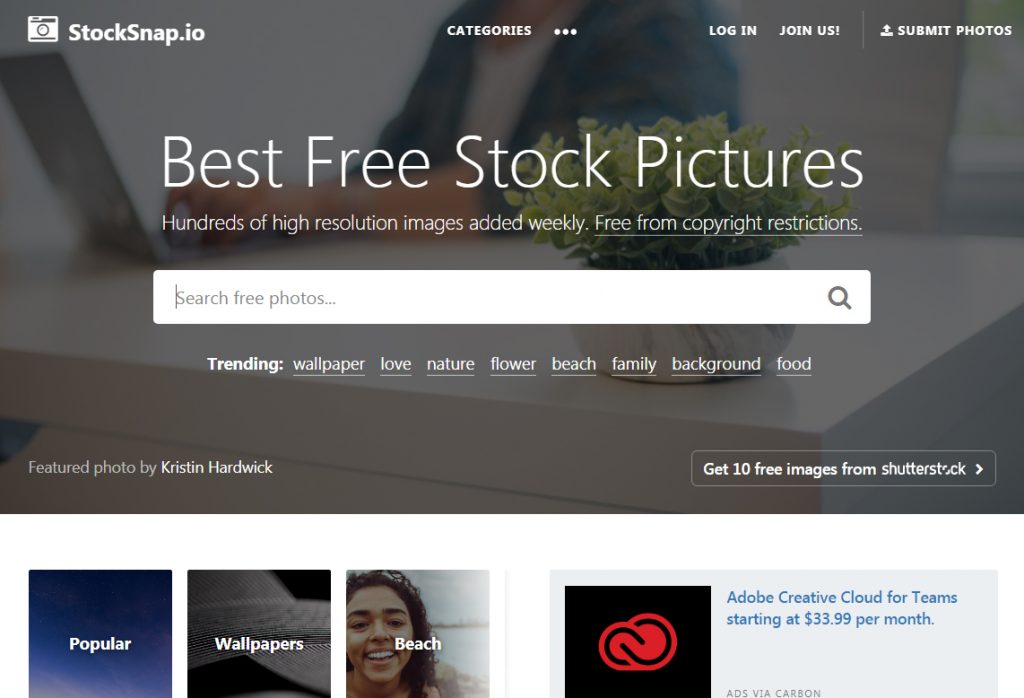 Cùng điểm qua 10 trang photo stock hoàn toàn miễn phí, với kho hình ảnh chất lượng cao cho phép designer sử dụng cho mục đích cá nhân lẫn thương mại. Lưu ý: Danh sách các trang web và chính sách miễn phí được cập nhật tại thời điểm thực hiện bài viết. Chúng tôi khuyên rằng bạn cũng nên cập nhật thường xuyên chính sách của các trang web này, để đảm bảo họ vẫn cung cấp hình ảnh miễn phí theo giấy phép Creative Commons Zero (CC0) nhé!