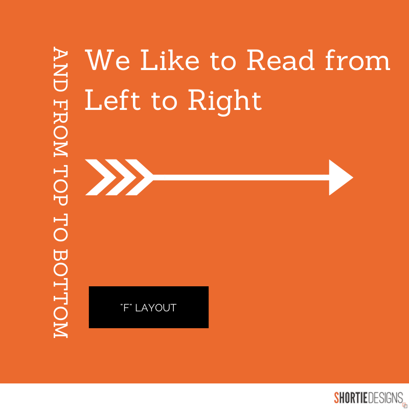Nghiên cứu khoa học đã chỉ ra rằng mắt người nhìn màn hình máy tính theo hình chữ F. Hầu hết những gì chúng ta nhìn thấy là ở phần phía trên-bên trái của màn hình, trong khi khu vực phía dưới-bên phải lại hiếm khi được chú ý đến. Do đó, thay vì cố gắng hướng sự chú ý của người dùng vào một phần nào đó, một website được thiết kế hiệu quả sẽ hoạt động song song theo phản xạ tự nhiên của người dùng, đặt những phần thông tin quan trọng theo trình tự từ trên xuống dưới, từ trái qua phải.