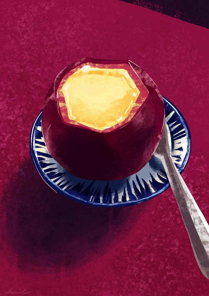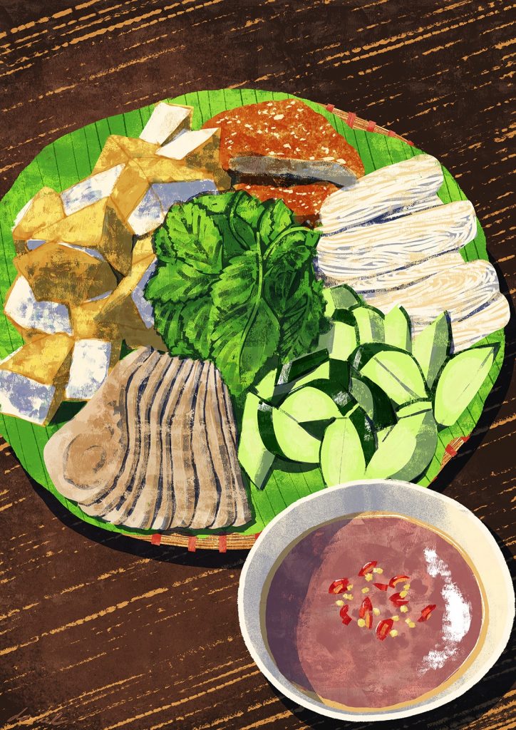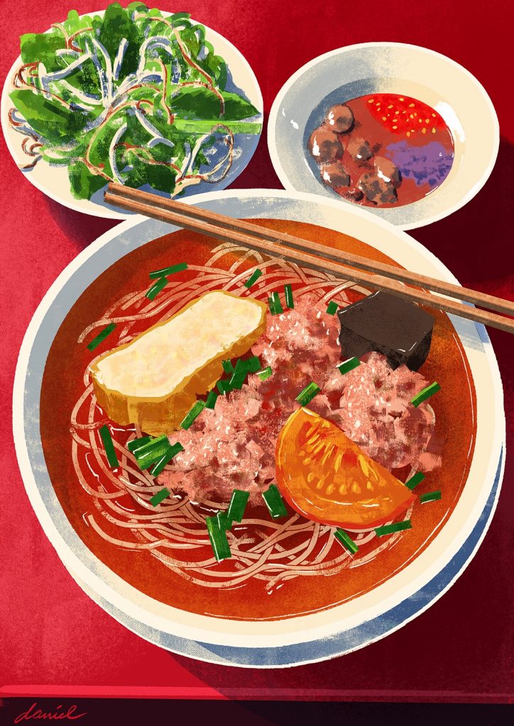 Dan: Thực ra là cũng tương đồng. Dan phải thử các món ăn này trước rồi sau đó mới quyết định mình có muốn vẽ về nó và chia sẻ với mọi người hay không. Mình nhận được rất nhiều lời giới thiệu từ bạn bè và followers. Đôi khi mình biết đến món ăn đó nhờ đọc qua các bài báo hoặc là chỉ ngẫu nhiên thôi nhưng ngon quá và mình quyết định vẽ chúng. Dan sẽ tận hưởng cảm giác, mùi thơm, độ nóng hay độ mát, sự rung cảm, hương vị, trải nghiệm tổng thể của món ăn… Sau đó chụp lại các ảnh tham khảo rồi vẽ minh hoạ lại chúng theo cách riêng của mình, cố gắng hết sức để truyền tải món ăn dựa theo kỷ niệm đẹp nhất của cá nhân.