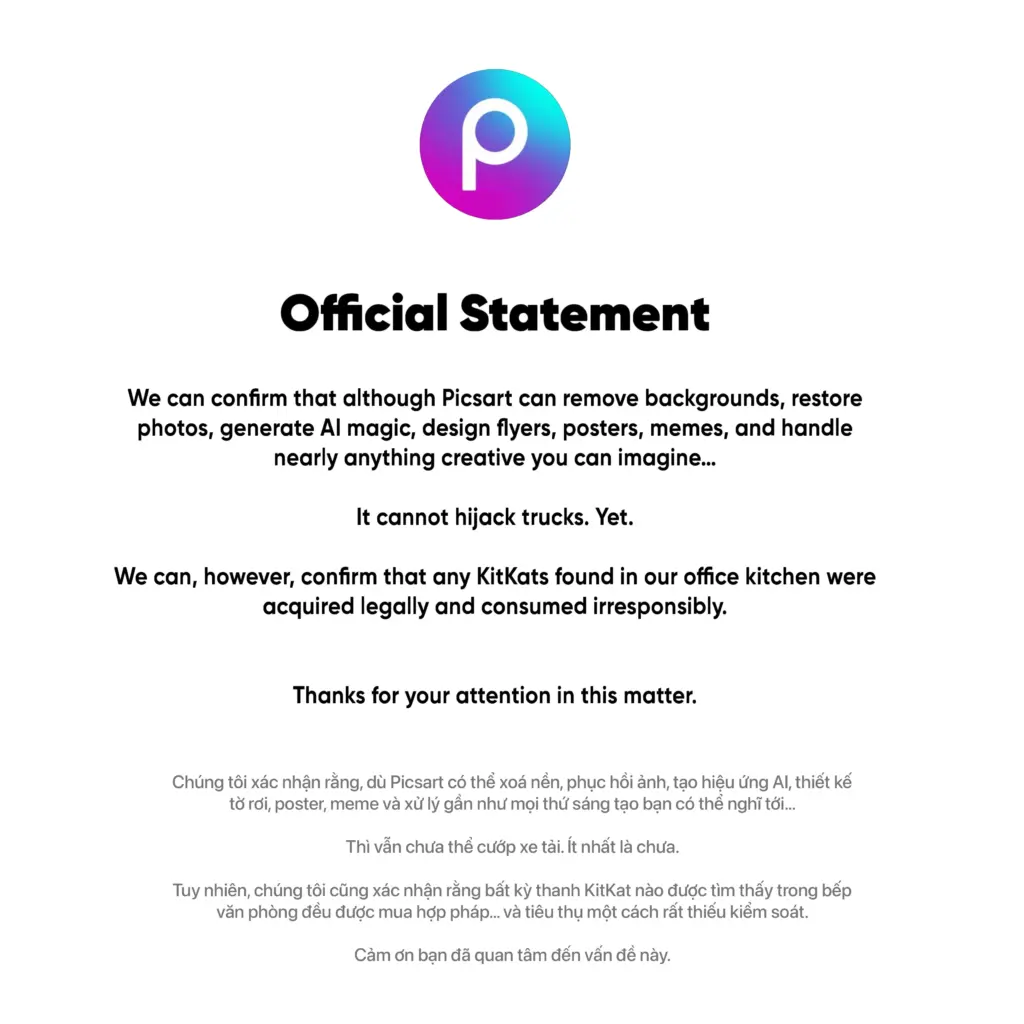 Trong thông báo chính thức về “phi vụ ngọt ngào” nhất thế kỷ này, KitKat thậm chí còn “khen” kẻ trộm vì “gu thưởng thức tuyệt vời”. Và đó là lúc internet nhập cuộc. Meme xuất hiện dày đặc, từ những phiên bản “KitKat Heist” đậm chất Money Heist đến hàng loạt kịch bản giả tưởng về số chocolate bị đánh cắp và bàn luận xem ai sẽ là người “nghỉ giải lao” nhiều nhất với 12 tấn chocolate này?. Truyền thông tiếp tục khuếch đại, còn các thương hiệu khác thì nhanh chóng bắt trend, biến câu chuyện thành một cuộc hội thoại mở trên social.