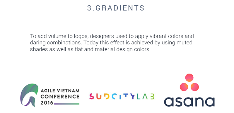 Có một vài nhà thiết kế thường sử dụng mầu sắc sặc sỡ với những kết hợp táo bạo để sáng tạo nên những mẫu logo mới lạ, hiện đại và đầy sức hút bằng phương thức gradient.