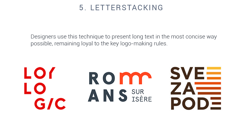 Những nhà thiết kế sử dụng kỹ thuật này để mô tả những đoạn văn dài theo cách cô đọng nhất, đồng thời vẫn trung thành với những quy tắc chính của việc tạo logo.
