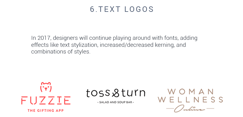 Trong năm 2017, các nhà thiết kế sẽ tiếp tục trò chơi với chữ, kèm thêm một số hiệu ứng như kiểu cách hóa, tăng/giảm khoảng cách, và kết hợp nhiều phương thức khác nhau.