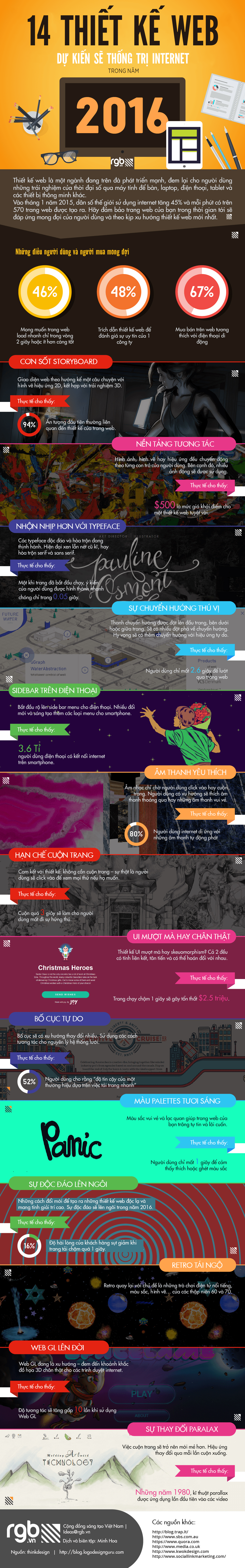 Cùng RGB tìm hiểu nhanh các xu hướng thiết kế web sẽ thống trị Internet trong năm 2016 qua Infographic dưới đây.