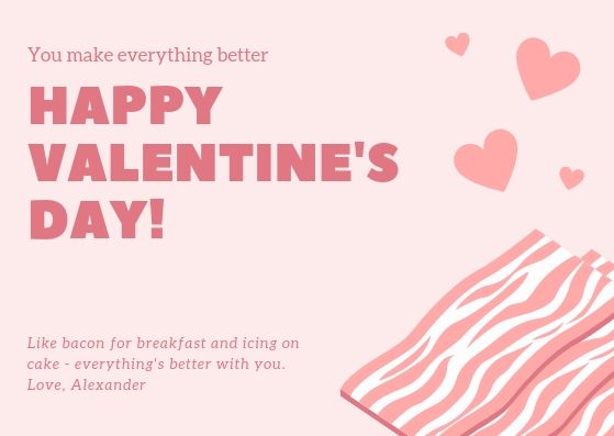 Khó có thể nói rằng điều gì tốt hơn, bacon hay là tình yêu đích thực. Hãy gửi cho người bạn đời thích bacon với với tấm thiệp này.