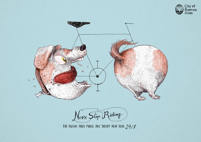 “Không ngừng đạp xe” là thông điệp của chiến dịch trông rất bắt mắt và hào hứng này. Với mục đích quảng bá hệ thống xe đạp của thành phố, mẩu quảng cáo là hình ảnh những người “đi săn” ở bánh xe sau đang đuổi theo “con mồi” ở bánh xe trước. Chiến dịch này cũng thắng giải Grand Prix và 2 giải Gold Lion in Press.