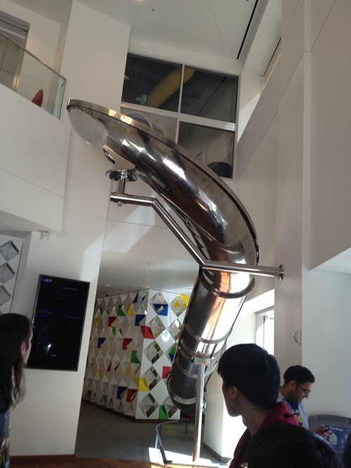 Google đã thiết kế lại Googleplex trở nên kỳ quái hơn với cầu trượt để di chuyển từ tầng này đến tầng khác trong tòa nhà của mình, phá vỡ những không gian làm việc truyền thống.