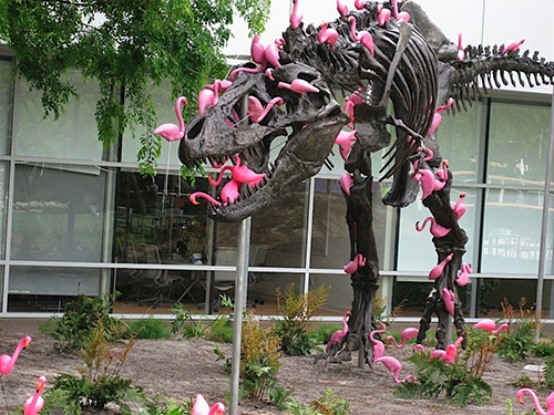 Googleplex xây dựng mô hình khủng long nổi tiếng, được bao phủ bởi những con chim hồng hạc
