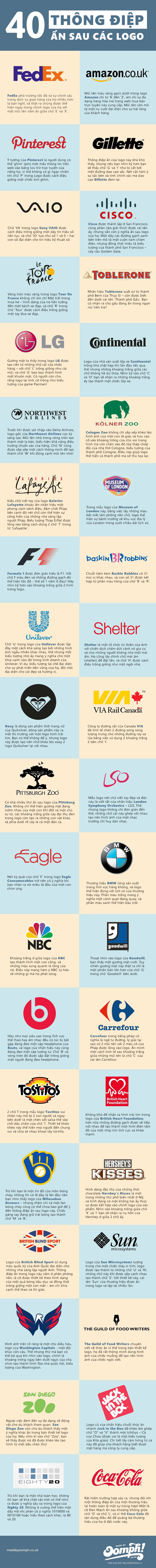 40 logo trong Infographic dưới đây đều ẩn chứa những thông điệp riêng của thương hiệu một cách hết sức tinh tế, các bạn hãy cùng RGB tìm thử tìm xem nhé!