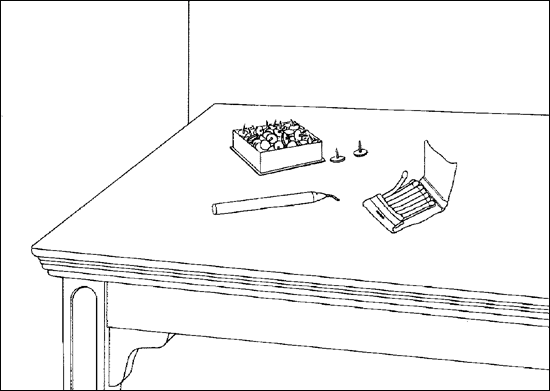 Đây là một bài kiểm tra điển hình về giải quyết vấn đề sáng tạo được phát triển bởi nhà tâm lý học Karl Duncker vào năm 1945. Các đối tượng nghiên cứu được đưa cho một cây nến, hộp đựng đinh bấm và một hộp diêm và được yêu cầu gắn cây nến sáng lên tường để nó không nhỏ giọt sáp lên chiếc bàn bên dưới. Thí nghiệm này kiểm tra tính cố định chức năng, xu hướng nhận thức gây khó khăn khi sử dụng các vật thể quen thuộc theo những cách bất thường.