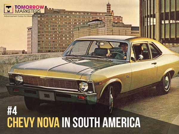 Khi hãng xe General Motors giới thiệu sản phẩm Chevy Nova tại thị trường Nam Mỹ, họ đã không biết rằng từ “nova” trong tiếng Tây Ban Nha có nghĩa là “không di chuyển”. Tất nhiên chả có ai muốn mua một chiếc xe không thể đi được, và việc doanh số của Chevy Nova ở Nam Mỹ không hề khả quan là điều dễ hiểu. Sau thất bại ấy, General Motors đã đổi tên sản phẩm thành Caribe để phù hợp với thị trường đặc biệt này.