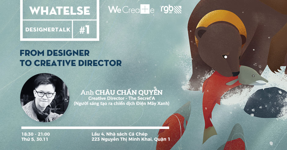 Với mong muốn giúp designer “yên tâm công tác”, tập trung vào ý tưởng và sản phẩm, RGB kết hợp cùng WhatElse – ấn phẩm sáng tạo thường kỳ tổ chức chuỗi chia sẻ DesignerTalk mang đến sự chia sẻ từ những diễn giả đã “có chỗ đứng, cứng chỗ đó” trong thế giới truyền thông marketing.