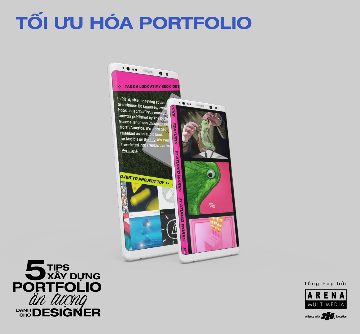 Không chỉ được sử dụng nhiều trong lĩnh vực thiết kế, portfolio còn được ứng dụng rộng rãi ở nhiều ngành nghề sáng tạo: nhiếp ảnh, content,… Nếu bạn đang loay hoay chưa biết thiết kế portfolio như thế nào cho thật ấn tượng thì hãy tham khảo thật nhiều và thử áp dụng những tips kể trên. Và nếu bạn biết thêm những tips bổ ích nào khác thì hãy chia sẻ cho FPT Arena và những Designer khác nhé!