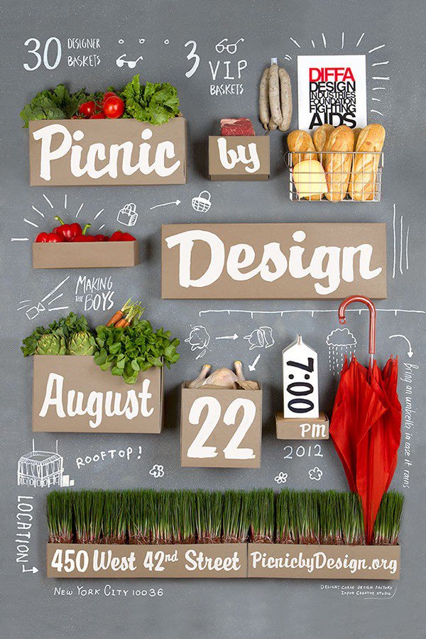 Poster từ Studio Input Creative và Nhà máy Corse đã thiết lập tính năng riêng cho các vật vô tri vô vô gíac cho những chiếc hộp rỗng, bìa hộp sữa, chiếc ô – để “làm nền” cho chữ viết và khiến cho tác phẩm bắt mắt hơn.