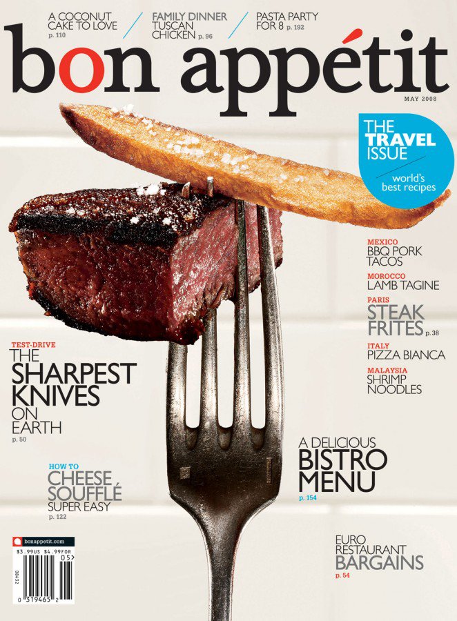 Matthew Lenning đã zoom cận cảnh vào lát thịt thơm ngon và miếng khoai tây chiên giòn tan, điều này khiến bìa tạp chí Bon Appetit trở nên càng hấp dẫn. Sự trình bày này thú vị hơn so với việc chỉ đơn thuần đặt món ăn trên một chiếc dĩa, đồng thời tôn vinh món ăn đậm chất châu Âu – Steak Frites.