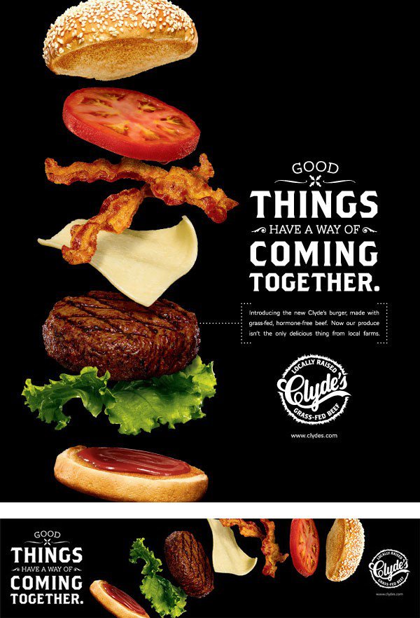 Mẫu quảng cáo của một nhà hàng được thiết kế bởi Stefan Poulos thật tràn đầy năng lượng, với nguyên liệu là những lát thịt, cà chua, phô mai cực kì đơn giản. Dù là những chuyển động ‘nhỏ xíu’ nhưng đều có thể mang đến nguồn cảm hứng mới mẻ nếu chúng ta nhìn chúng bằng ánh mắt nghệ thuật đấy!