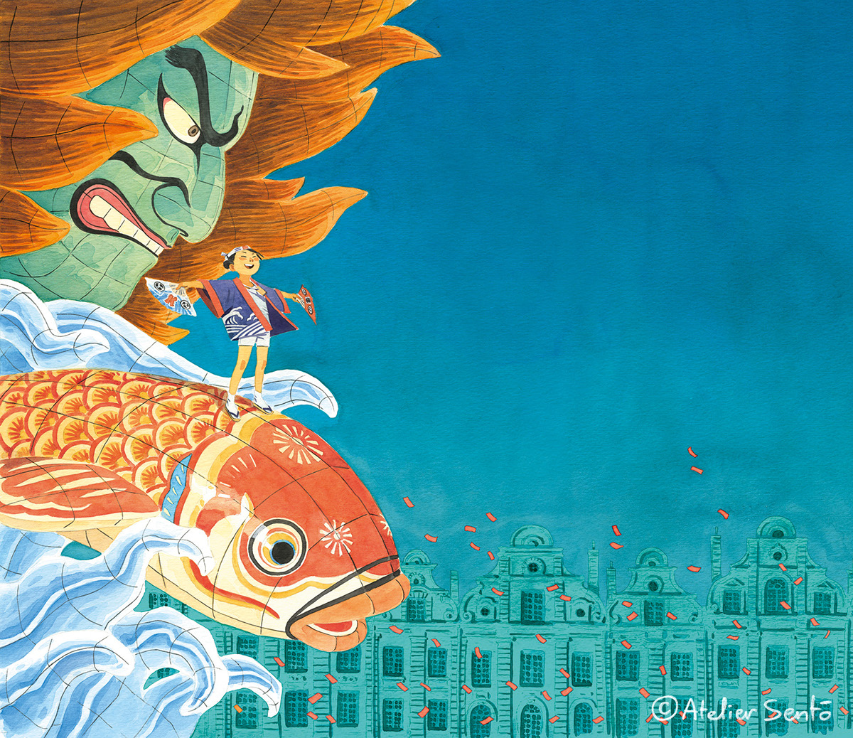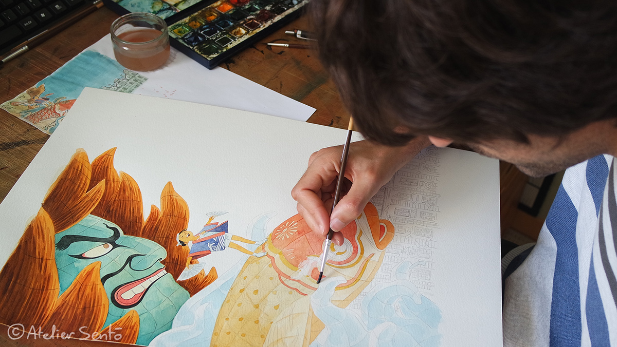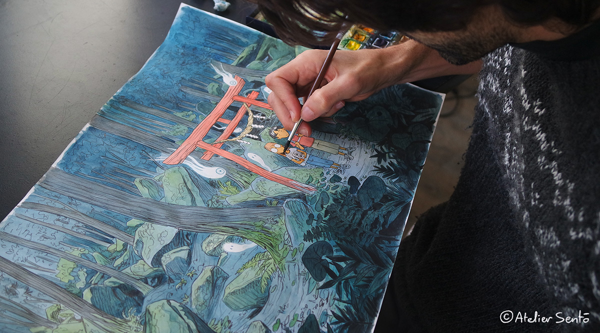 Atelier Sentô, nghệ danh được hai họa sĩ Cecile Brun và Olivier Pichard truyền cảm hứng từ những chuyến đi, về con người hoặc qua những bức hình ở đất nước mặt trời mọc, Nhật Bản. Họ chọn lựa chất liệu truyền thống như màu nước, bút chì màu, khắc gỗ…để tạo nên những tác phẩm ấn tượng. Cảm nhận những bức tranh, hai họa sĩ mong muốn truyền tải nét đẹp về những lễ hội, làng mạc, cũng như tinh thần vốn có mà nó mang lại.