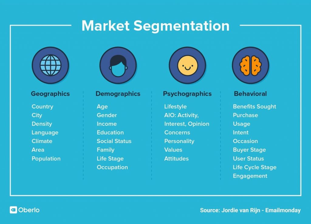 Trước hết, hãy nói đến tổng quan, quá trình này gồm ba giai đoạn: xác định phân khúc, nhắm mục tiêu và định vị. Giai đoạn đầu tiên khá rõ ràng: tìm hiểu khách hàng của bạn là ai và chia cơ sở khách hàng tiềm năng của bạn thành các phân khúc khác nhau dựa trên nhân khẩu học, vị trí, chủ đề quan tâm hoặc hành vi.