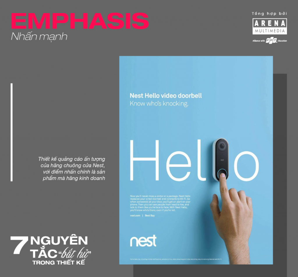 Lựa chọn điểm nhấn trong thiết kế là nguyên tắc đầu tiên khi định hình ý tưởng sáng tạo. Một thiết kế có điểm nhấn ấn tượng sẽ thu hút sự chú ý của người xem, giúp họ nắm bắt được phần nội dung quan trọng chỉ trong vài giây.