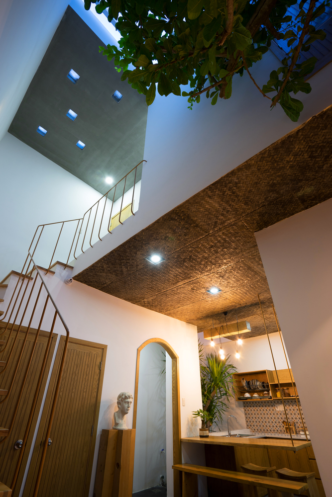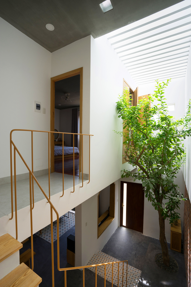 Cây xanh là một phần không thể thiếu vì chúng đóng vai trò quan trọng trong việc làm nổi bật những lỗ giếng lấy sáng, giúp tạo cảm giác thư thái, thoải mái cho ngôi nhà nhỏ.