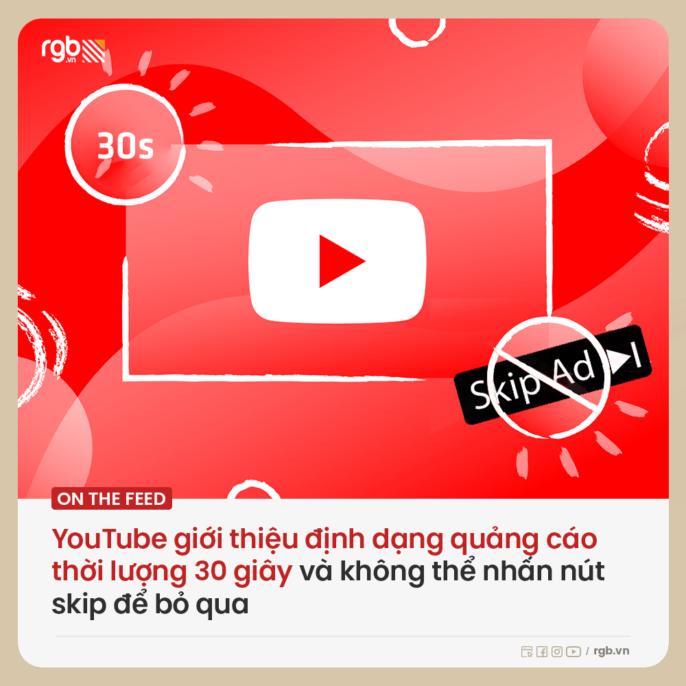 Mới đây, YouTube đã giới thiệu định dạng quảng cáo dài 30 giây mà người dùng không thể nhấn nút “bỏ qua”. Thay vì được bấm “skip” sau 5 giây đầu quảng cáo, thì với định dạng mới này, người dùng buộc phải đợi đến hết 30 giây mới có thể tiếp tục xem video.