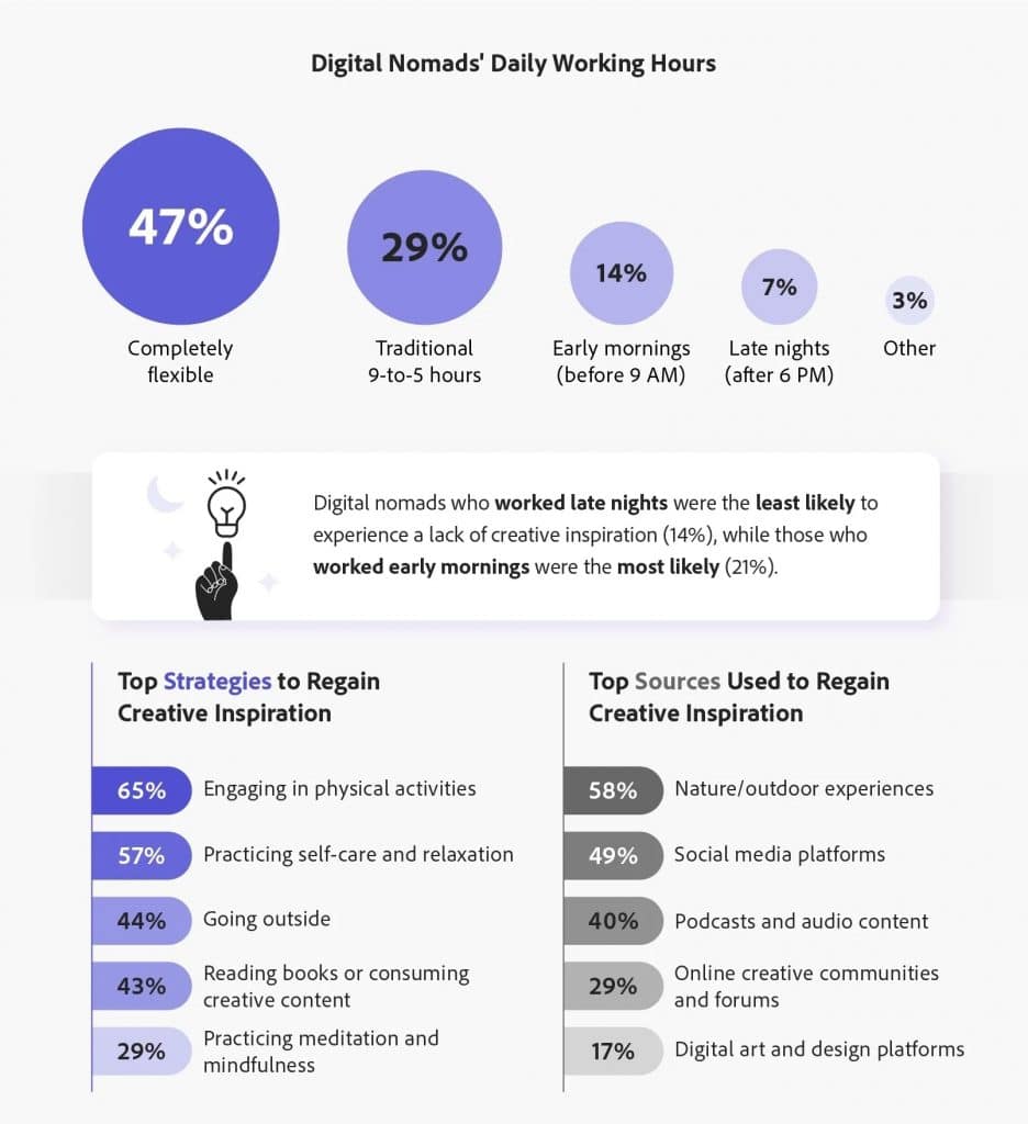 Có 18% người làm sáng tạo thừa nhận thường xuyên gặp phải tình trạng burnout, và 72% trong số họ cho biết việc thay đổi môi trường làm việc có thể giúp khơi dậy lại nguồn năng lượng sáng tạo của mình.