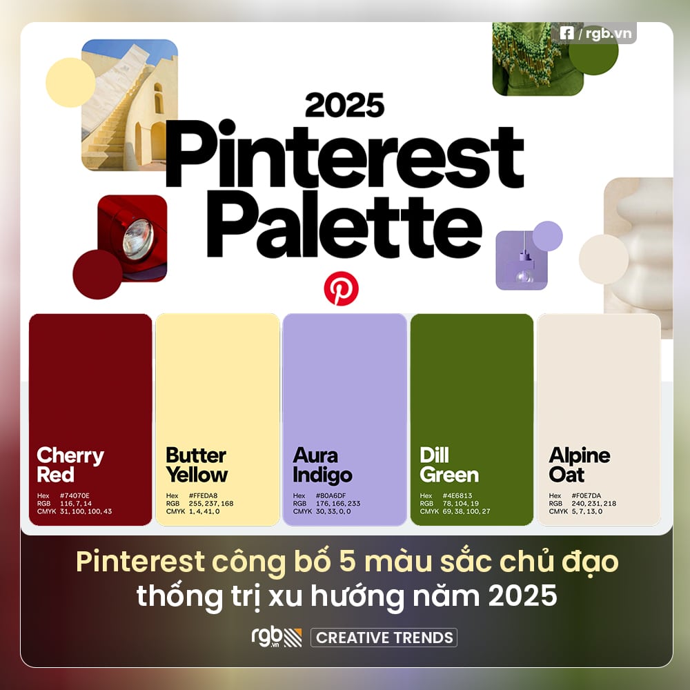 Pinterest công bố 5 màu sắc dự báo dẫn đầu xu hướng năm 2025