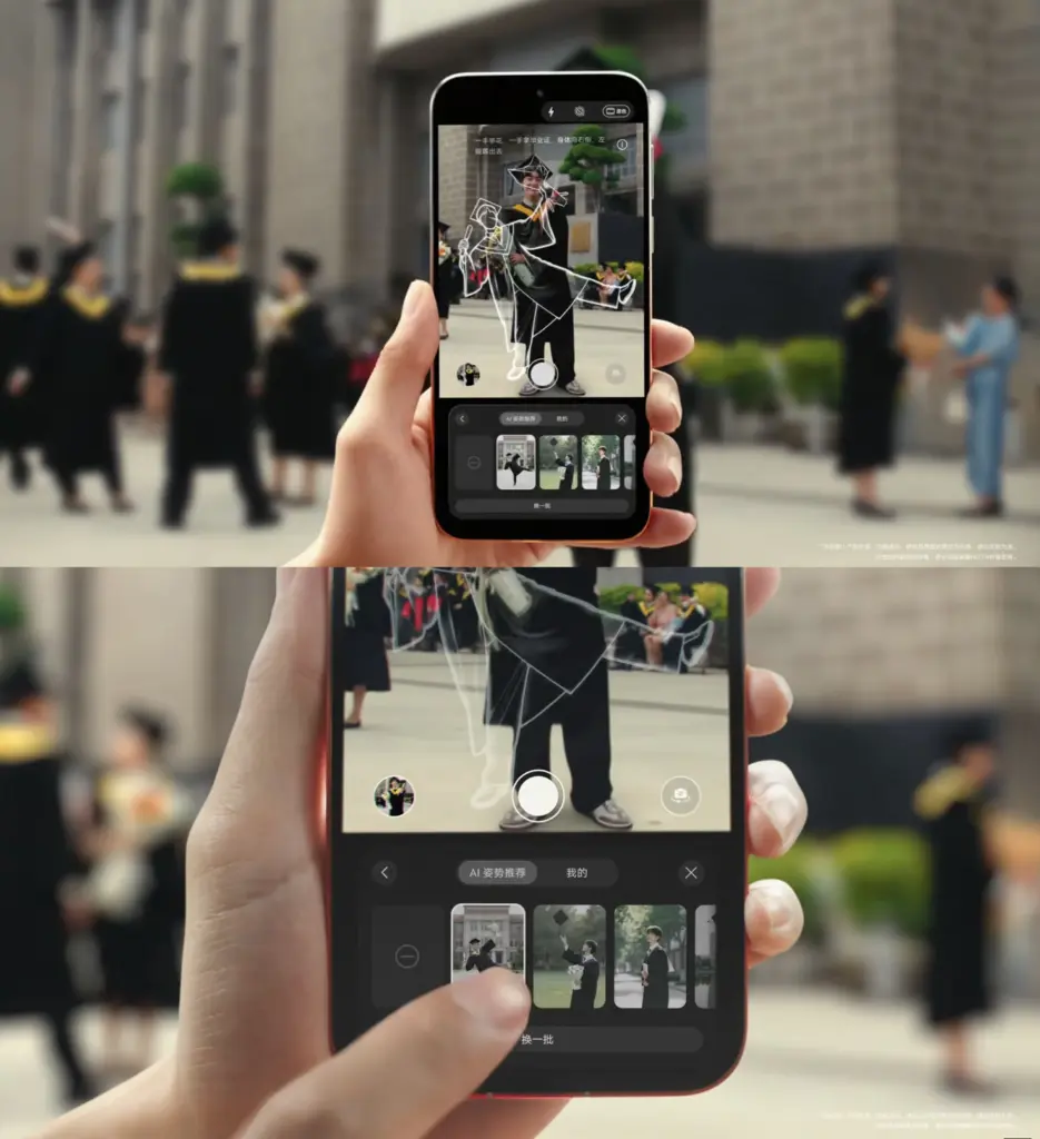 Cụ thể, tính năng “AI pose suggestions” sẽ phân tích bối cảnh trước khi chụp và đề xuất những tư thế phù hợp với môi trường xung quanh. Người dùng chỉ cần bật chế độ này, các gợi ý sẽ xuất hiện trực tiếp trên màn hình dưới dạng silhouette hoặc các điểm đánh dấu. Dù đang đứng, ngồi hay chụp trong bối cảnh đặc biệt, smartphone sẽ hướng dẫn tư thế giúp cải thiện bố cục và tổng thể bức ảnh.