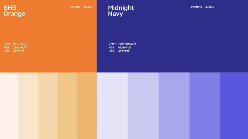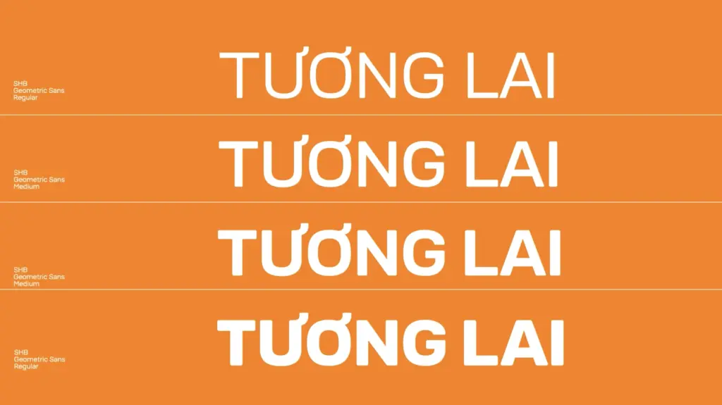 Song song với cấu trúc hình khối, hệ màu sắc và kiểu chữ đóng vai trò then chốt trong việc hoàn thiện trải nghiệm thị giác của thương hiệu SHB.