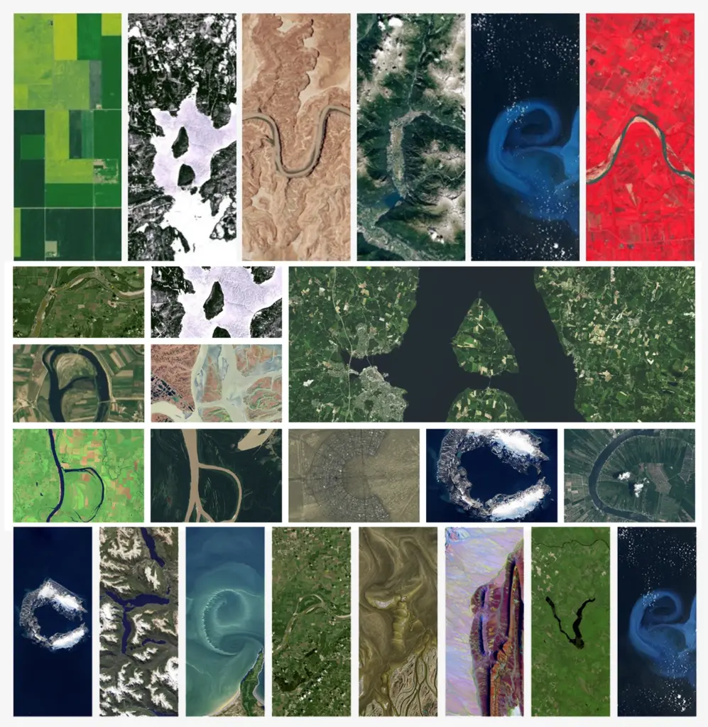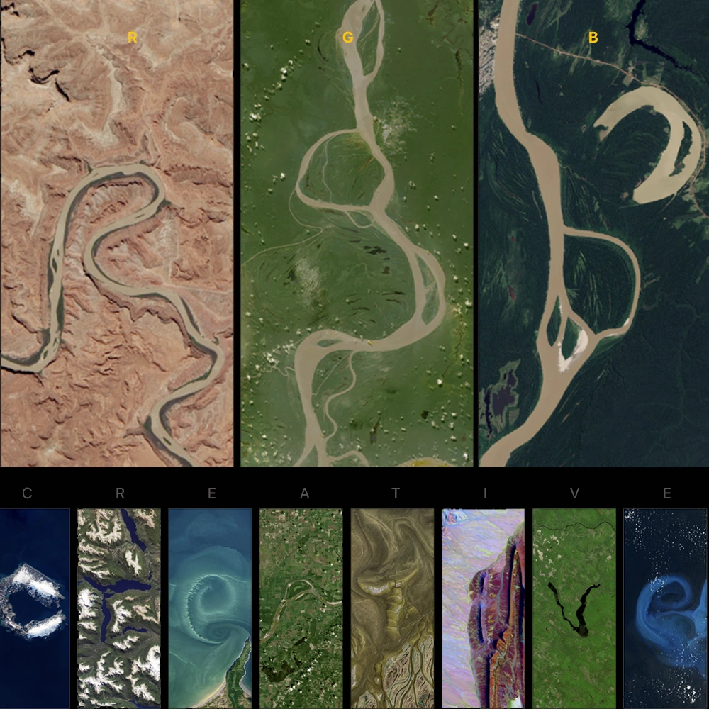 Mỗi chữ cái được ghép từ một dạng địa hình tự nhiên có hình dáng tương tự như dòng sông uốn lượn, đường bờ biển hay những mảng sa mạc. Kết quả không phải là một font chữ kỹ thuật số, mà là một “bộ chữ” được tạo nên từ những địa điểm có thật. Một đường bờ cong có thể trở thành chữ “O”, trong khi các nhánh sông có thể tạo thành góc cạnh của chữ “A” hay “K”.