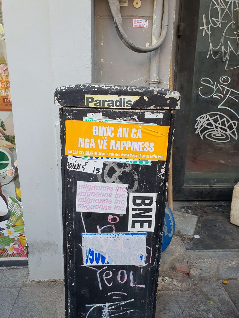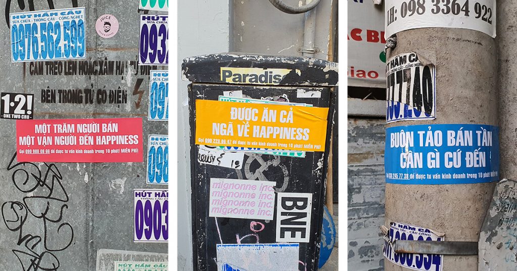 Lấy cảm hứng từ hành vi của nhiều doanh nghiệp nhỏ tại TP. Hồ Chí Minh, Happiness Saigon đã tạo nên dịch vụ tư vấn sáng tạo theo một kiểu mới. Ở Việt Nam, những doanh nghiệp địa phương thường quảng cáo bằng tờ rơi và tem decal. Những tờ rơi này được dán trên trụ điện và trong các con hẻm ở khắp Sài Gòn, đã trở thành một nét đặc trưng của thành phố suốt nhiều năm qua.