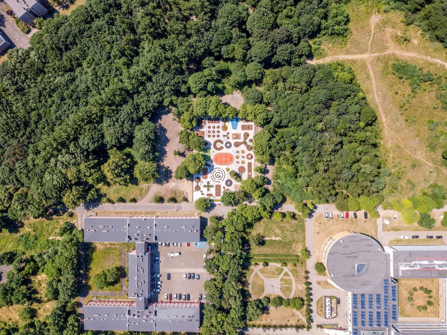 Activity Zone nằm ở phía sau tòa nhà trước đây là nơi đóng quân của quân đội, nay được hợp nhất lại với khu đô thị Chorzów.