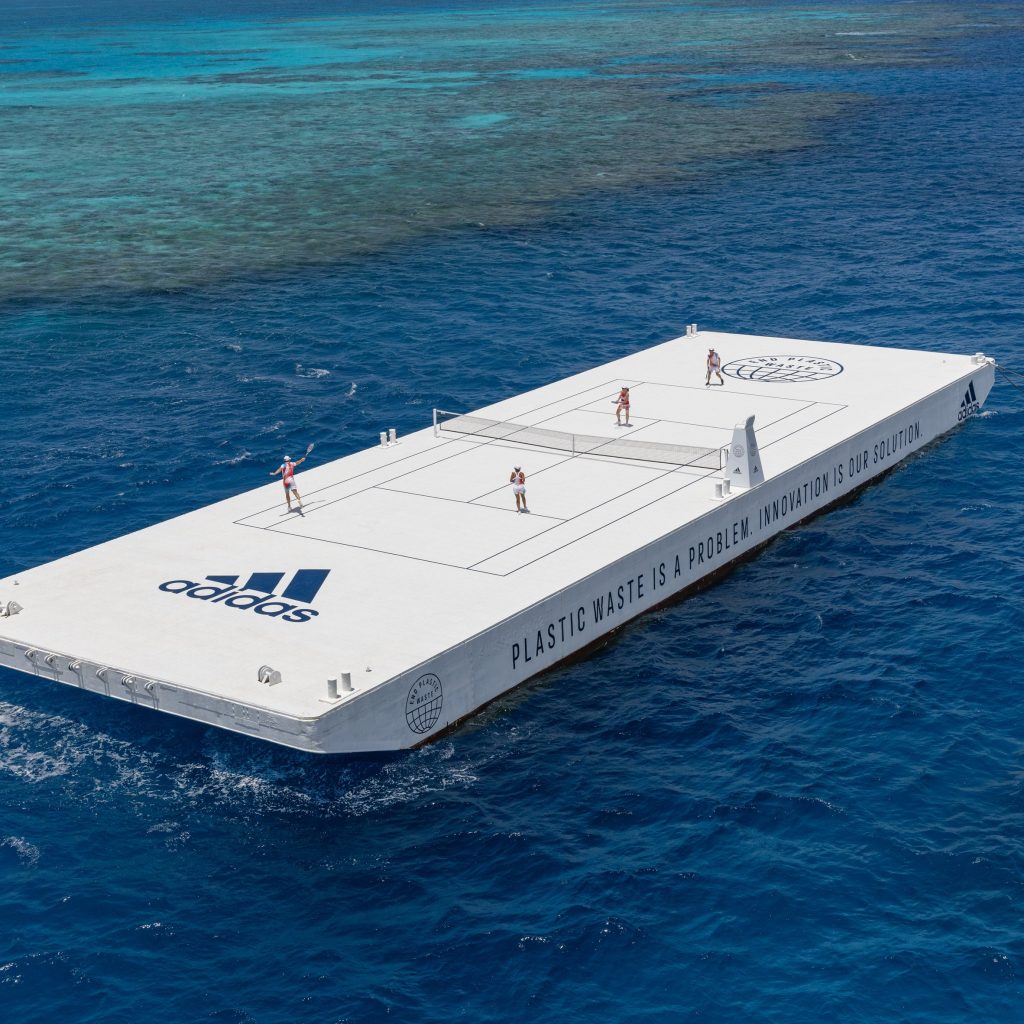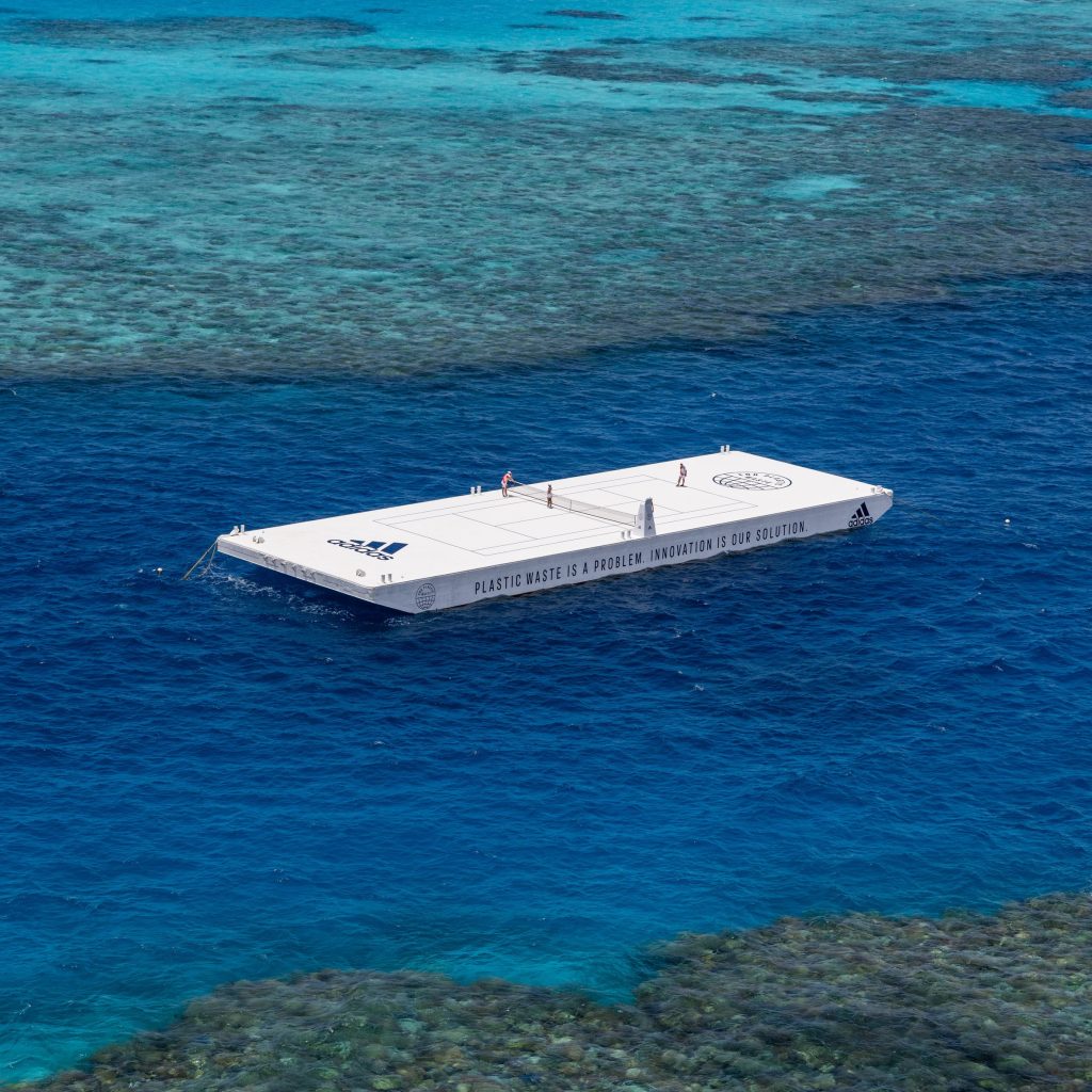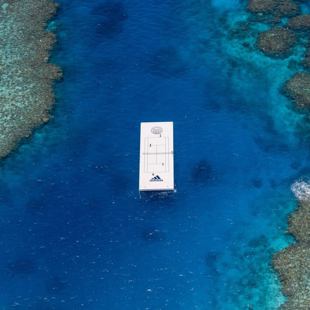 Adidas vừa kết hợp mới tổ chức môi trường ‘Parley for the Oceans’ để tạo ra một sân tennis có kích thước như thật từ nhựa tái chế, trôi nổi trong khu khu bảo tồn biển Great Barrier Reef của Úc.