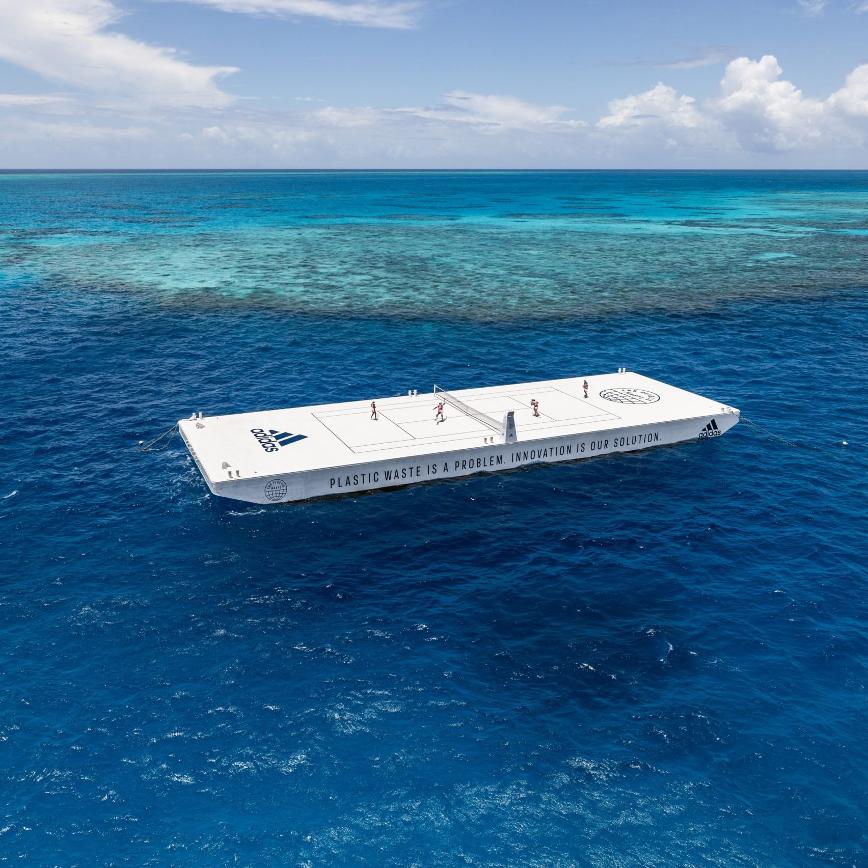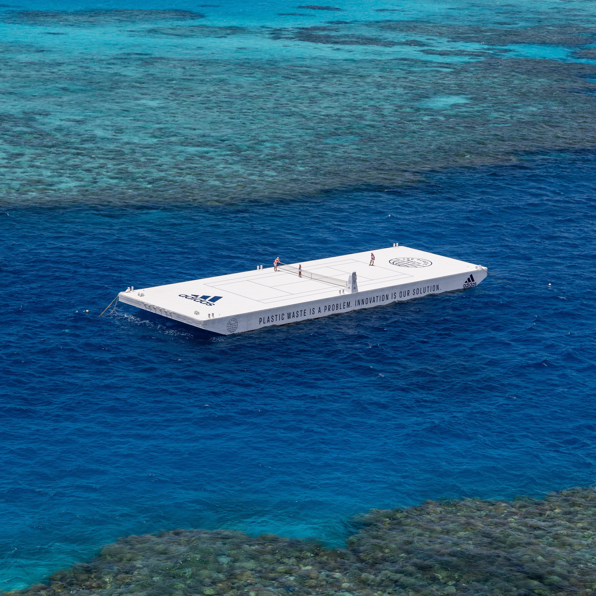 Adidas vừa kết hợp mới tổ chức môi trường ‘Parley for the Oceans’ để tạo ra một sân tennis có kích thước như thật từ nhựa tái chế, trôi nổi trong khu khu bảo tồn biển Great Barrier Reef của Úc.