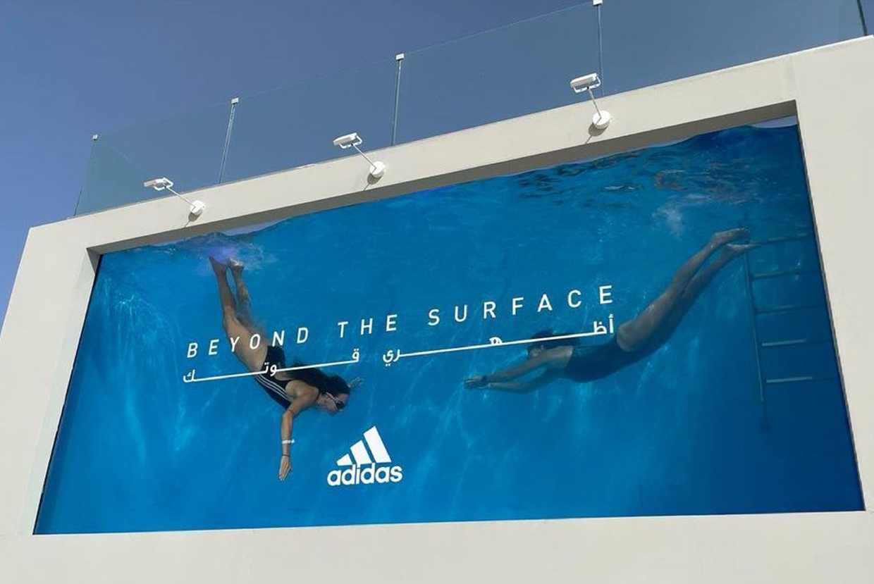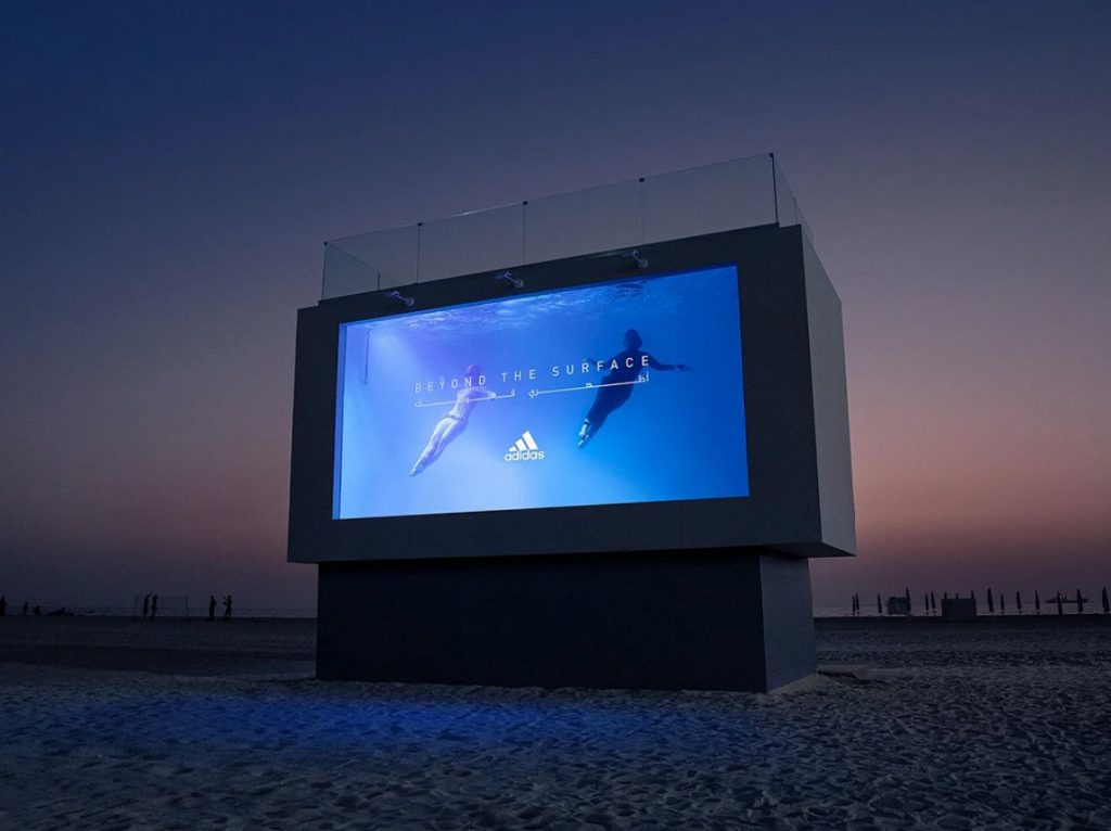 Adidas kết hợp cùng agency Havas Middle East ra mắt bảng quảng cáo có thể bơi được trực tiếp đầu tiên trên thế giới.