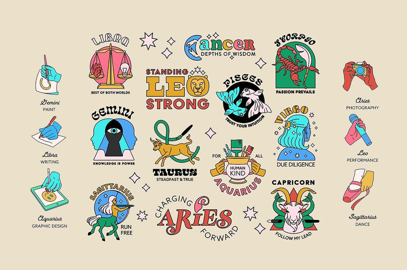 Cho dù bạn có thích tử vi hay không, có thể đồng ý rằng những hình minh họa cổ điển, tươi vui sẽ làm bừng sáng những ý tưởng của bạn.