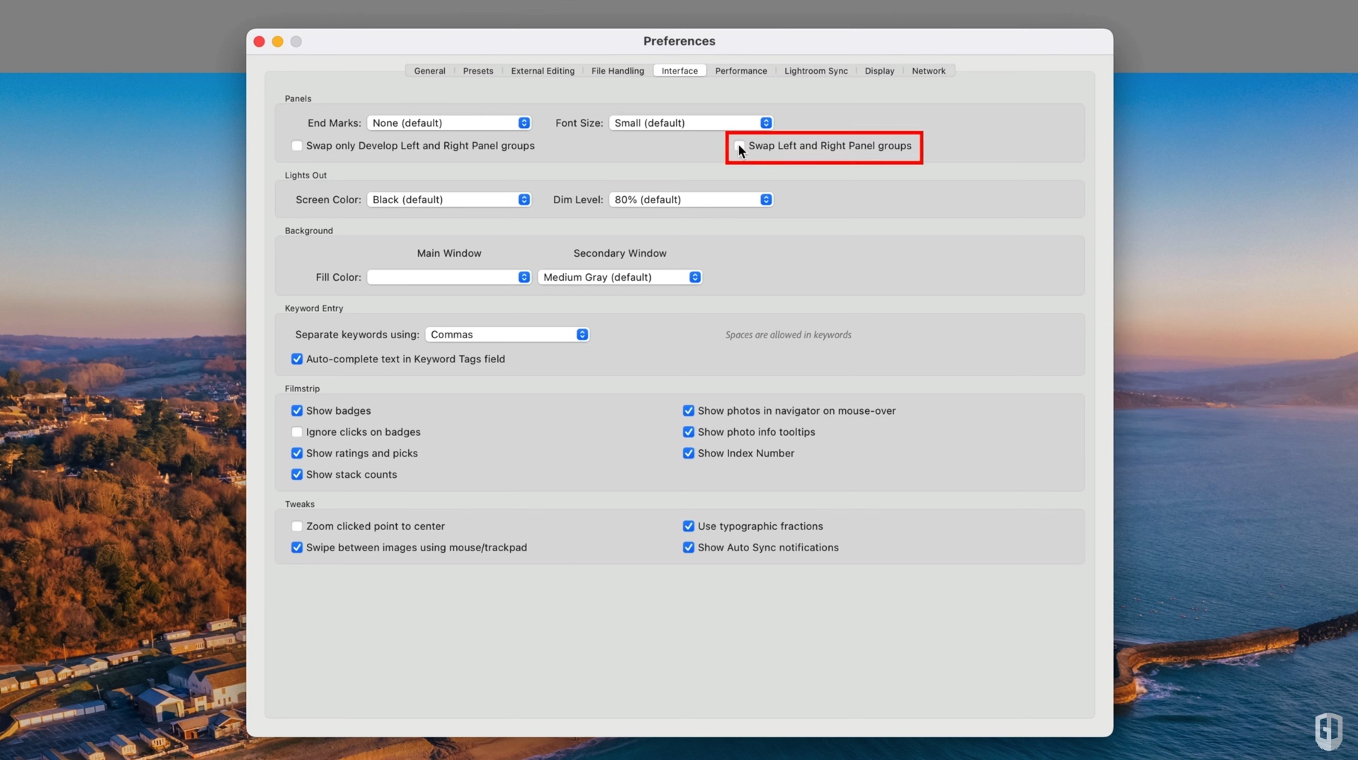 Trên Lightroom Classic, bạn cũng có thể tìm thấy các tùy chọn trợ năng tương tự trong phần Preferences > Interface, sau đó chọn ‘Swap only Develop Left and Right Panel Groups’ hoặc ‘Swap Left and Right Panel groups’. Giao diện được điều chỉnh sẽ xuất hiện vào lần tiếp theo bạn mở ứng dụng.