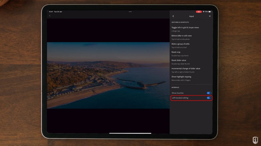 Giờ đây, trên phiên bản Lightroom dành cho các thiết bị di động, bạn có thể di chuyển vĩnh viễn thanh điều chỉnh sang bên trái màn hình bằng cách đi tới cài đặt của mình, sau đó nhấn vào ‘Input’ và ‘Left-handed editing’ – một tùy chọn tuyệt vời cho những người thuận tay trái.