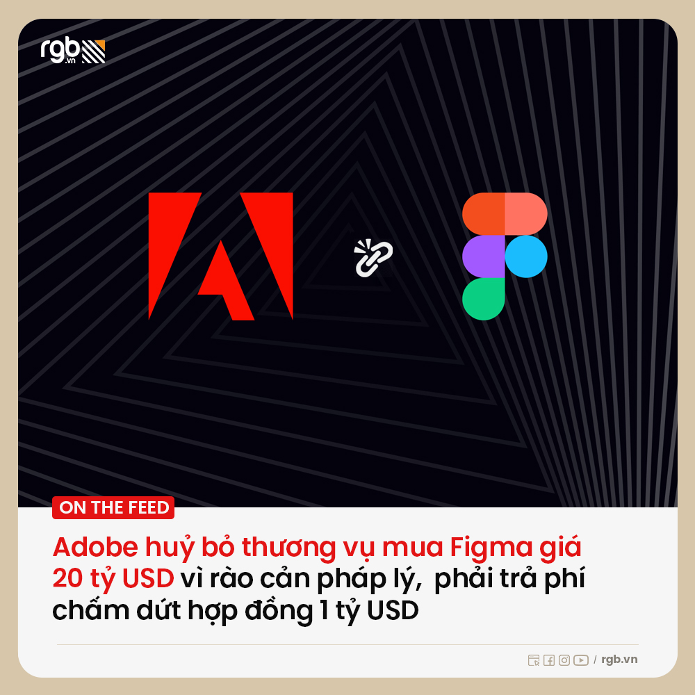 Ngày 18/12 qua, công ty phần mềm máy tính Adobe đã hủy bỏ thỏa thuận trị giá 20 tỷ USD với nền tảng thiết kế dựa trên đám mây Figma. Quyết định này được đưa ra sau khi chính quyền Liên minh châu Âu và Vương quốc Anh nêu lên những lo ngại về cạnh tranh liên quan đến thương vụ. Theo cơ quan này, thương vụ của Adobe và Figma sẽ gây tổn hại cho thị trường phần mềm hay các doanh nghiệp khởi nghiệp được xem là các đối thủ còn non nớt.