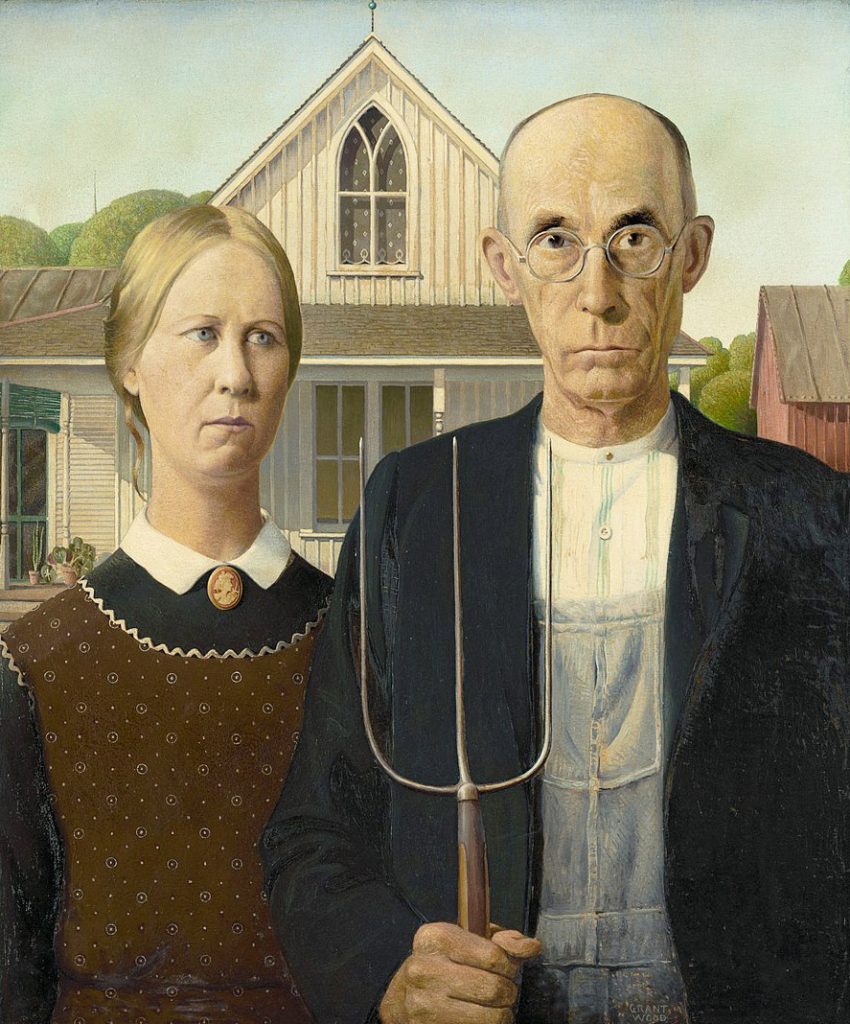 Grant Wood (1891-1942) là một trường hợp khó có thể nói là thành công tức thời. Vào năm 1930, ông vẫn chỉ là một người họa sĩ và nhà trang trí nội thất vô danh ở độ tuổi trung niên, sinh sống tại Cedar Rapids, Iowa. Vào năm đó, bài dự thi của ông cho chương trình nghệ thuật thường niên của Viện Nghệ thuật Chicago đã giành huy chương đồng và nhận được 300 đô la. Wood vô cùng hứng khởi. Ông thuê một nhà báo — trong thời kỳ suy thoái, ta có thể thuê người làm bất cứ việc gì với giá rẻ mạt — và vài ngày sau, bức American Gothic xuất hiện trên trang nhất chuyên mục nghệ thuật của tờ báo Chicago Evening Post. Nhà phê bình nghệ thuật của tờ báo này gọi đây là “bức tranh đáng xem nhất chương trình” và thực sự là “đậm chất Mỹ”. Ngay sau đó American Gothic được tái bản thành hàng trăm ấn phẩm, sánh vai cùng bức vẽ chân dung người mẹ của Whistler và được coi như một trong những bức họa nổi tiếng nhất của nước Mỹ.