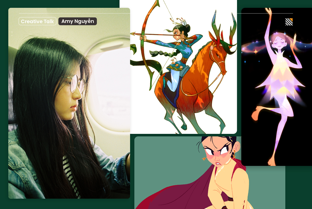 Amy Nguyễn gây ấn tượng với cách thiết kế nhân vật: Sự đơn giản, phát triển từ những hình dạng (graphic shapes) cơ bản và màu sắc đậm đà, nổi bật (bold color),… Còn bài viết “gây ấn tượng” với trải nghiệm sáng tạo của Amy Nguyễn, quy trình sáng tạo và những dự án thực tế.