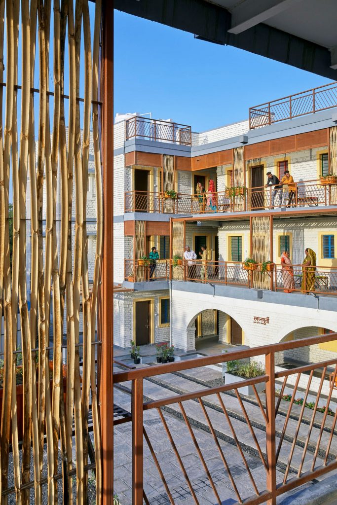 “Những không gian chung này đã phát triển qua nhiều năm dựa trên mối quan hệ và tương tác giữa các cư dân – phụ nữ sử dụng khu vực này để chuẩn bị thức ăn để nấu nướng, rửa dụng cụ, người già ngồi bên ngoài khi họ xem trẻ em chơi, ngay cả thú nuôi như dê và chó cũng chia sẻ những không gian này”, Sandhya nói tiếp.
