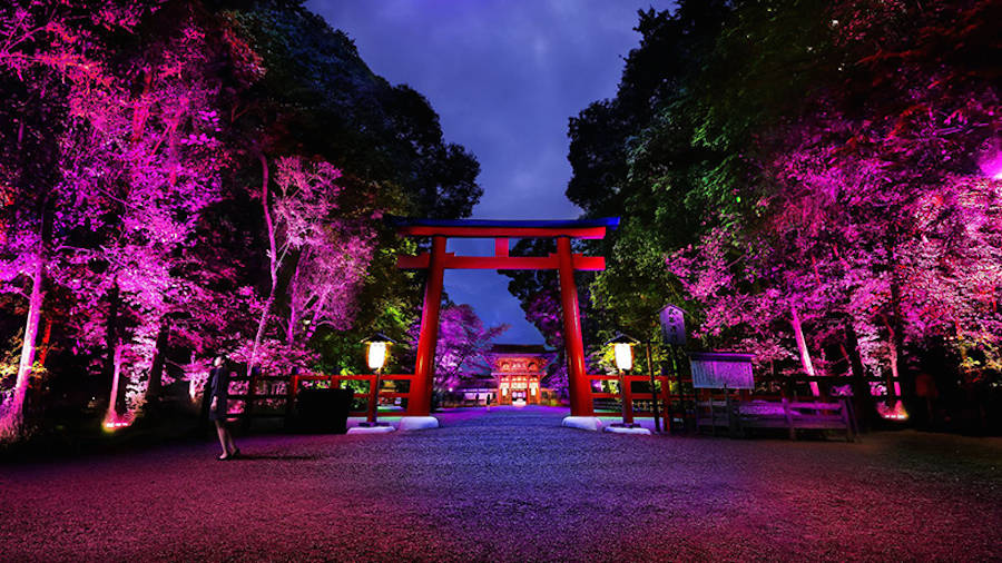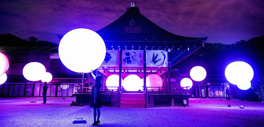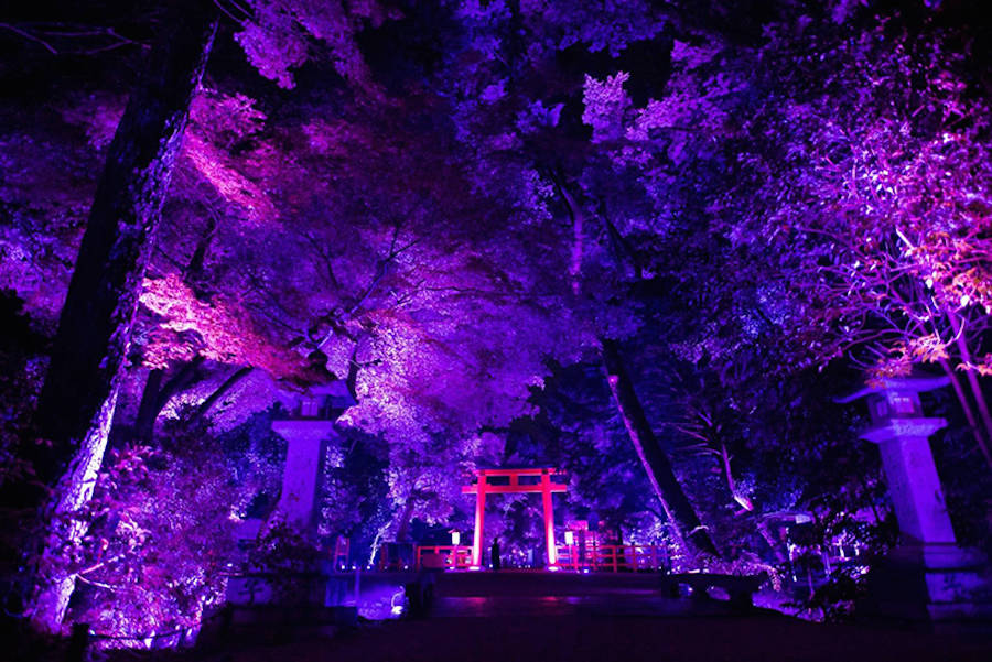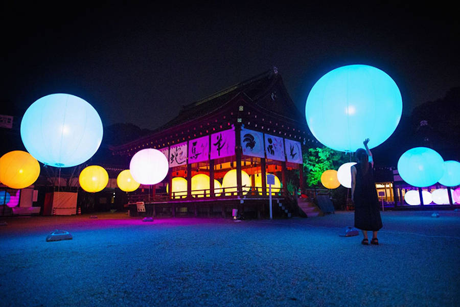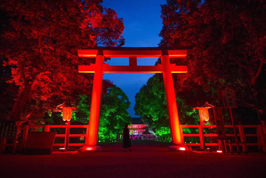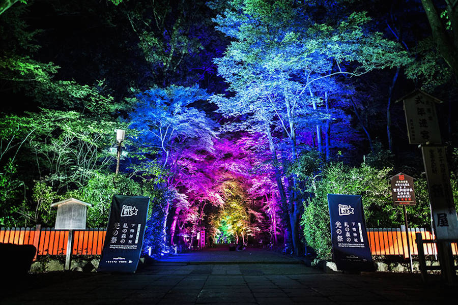 TeamLab đã tiết lộ hệ thống cài đặt sáng tương tác mới mẻ của mình tại Kyoto. Sự kết hợp hoàn hảo giữa phần hòa âm cộng hưởng và cây thắp sáng đã khoác chiếc áo đầy màu sắc lên khu bảo tồn di tích lịch sử và rừng nguyên sinh Shimogamo.