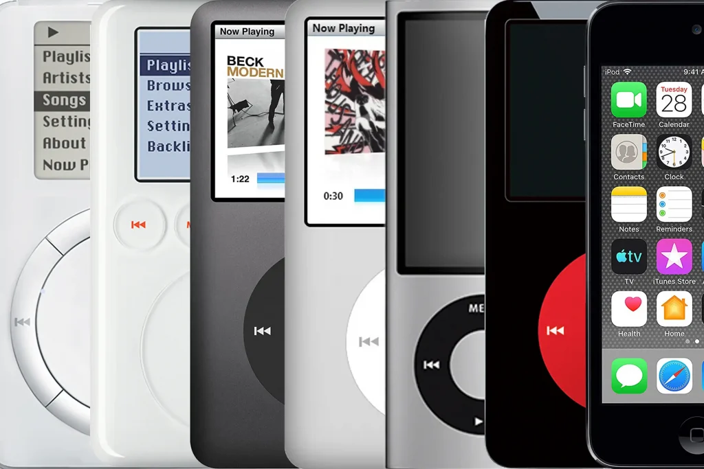 Chiếc iPod đầu tiên được ra đời vào tháng 10/2001. Ban đầu, những mẫu iPod chỉ được thiết kế riêng cho mục đích nghe nhạc. Apple vẫn bán những mẫu iPod thuần nghe nhạc tới tận năm 2017, với hai dòng iPod Nano và iPod Shuffle.