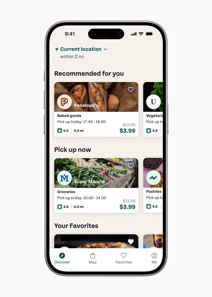 Too Good to Go cho phép người dùng giảm thiểu lãng phí thực phẩm bằng cách kết nối họ với các nhà hàng và cửa hàng có lượng thực phẩm dư thừa chưa bán được với chi phí phải chăng.